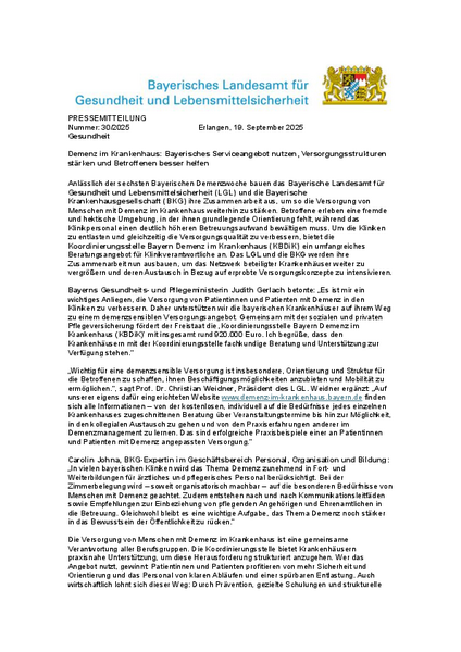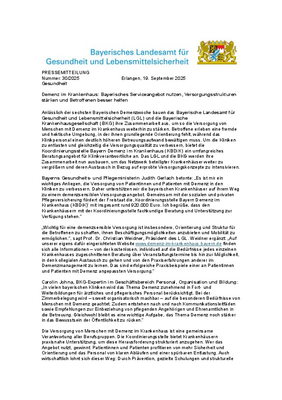 Demenz im Krankenhaus: Bayerisches Serviceangebot nutzen, Versorgungsstrukturen stärken und Betroffenen besser helfen | Pressemitteilung des LGL